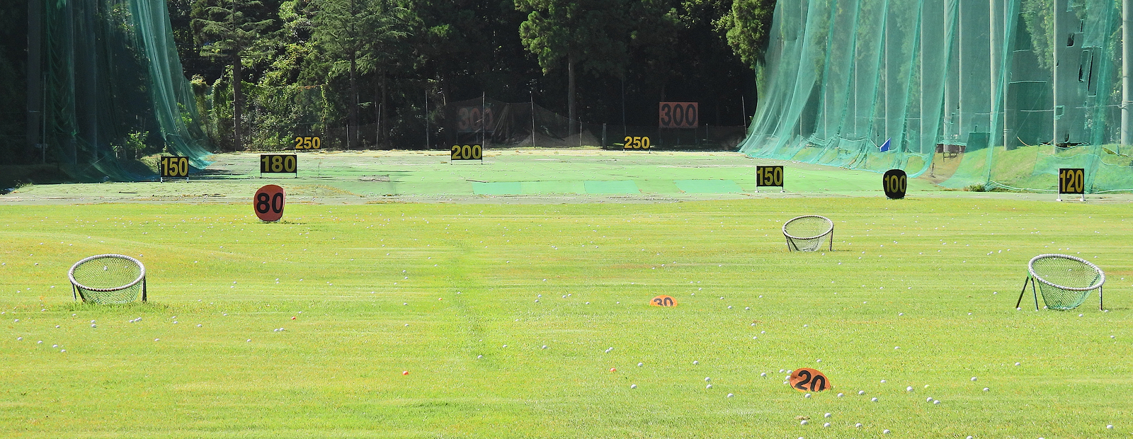 緑豊かな自然に囲まれた広大な敷地に、100打席・300ヤードロングレンジの開放感ある練習場を完備