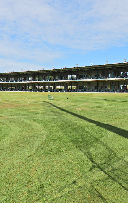 緑豊かな自然に囲まれた広大な敷地に、100打席・300ヤードロングレンジの開放感ある練習場を完備